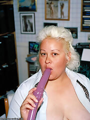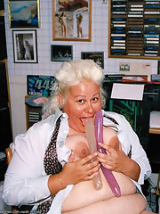 Fat granny babe playing with two big dildos