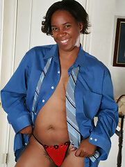 Ebony MILF Theresa Long slides out of her elegant dress to spread