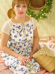 Irresistible teen feels free in the sweet smell of flowers, where she spreads her legs to show her amazing little twat.