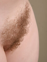 Sweet hairy girl Tamar strips off her purple dress, playing with her hairy pussy while she sits naked on her kitchen floor. She spreads her legs and shows a pussy worthy of this hirsute porn.
