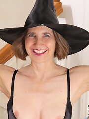 Hot Anilos granny wears stockings as she shows off her naked body