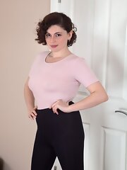 Anni Bay has coffee but her dildo is her candle holder at the table. She strips naked and gets ready to play. She uses her dildo deep inside her hairy pussy and masturbates as she orgasms loudly today.