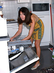 Long haired 31 year old housewife Aurora Jade makes laundry fun